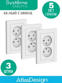Встраиваемая двойная розетка с заземлением и рамкой 2 компл