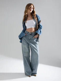 Джинсы baggy женские y2k багги широкие с высокой посадкой