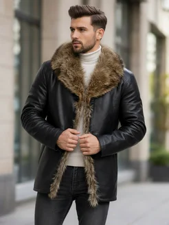 Зимняя дубленка кожаная мужская куртка утепленная с мехом