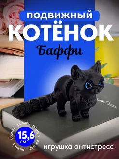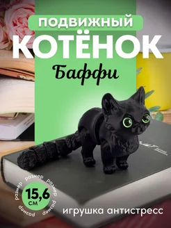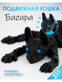 Подвижная кошка Багира антистресс-игрушка черный 31см