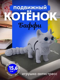 Подвижный котенок Баффи антистресс-игрушка Синий 15 6см