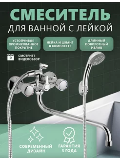 Смеситель для ванны с душем и лейкой однорычажный