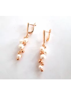Серьги нарядные серёжки позолоченные висюльки с жемчугом