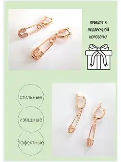 Серьги нарядные булавки позолоченные с фианитами под золото