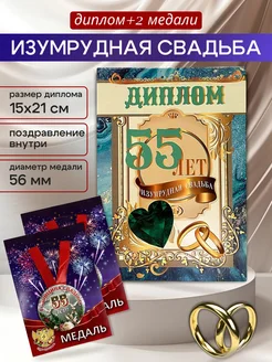 Набор диплом медаль (2 шт ) изумрудная свадьба 55 лет