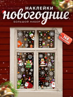 Новогодние наклейки на окна и мебель - 168 штук