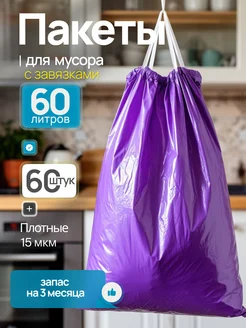 Мешки для мусора пакеты мусорные 60 л 60 шт