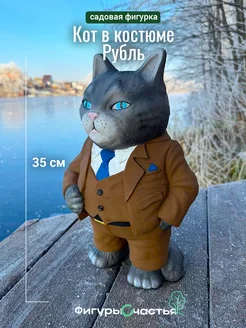 Садовая фигура для дачи и огорода кот в костюме Рубль
