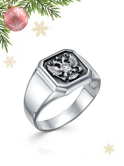 Кольцо печатка серебро 925 Герб России