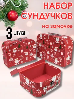 Коробка чемоданчик с замком новогодняя Набор 3 штуки