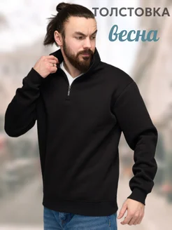 Толстовка полузамок на молнии теплая с воротником-стойкой