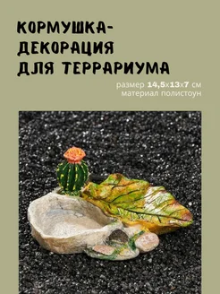 Кормушка-поилка для террариума 14,5х13х7 см, Лист с кактусом