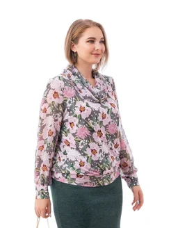 Блузка офисная с длинным рукавом и воротником из шифона
