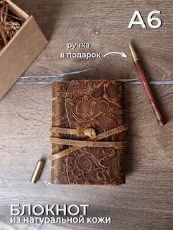 Ежедневник из натуральной кожи А6 на кольцах с ручкой
