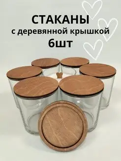 Стаканы для свечей с деревянной крышкой 6шт. 250мл