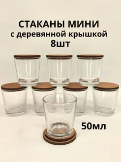 Стаканы МИНИ для свечей с деревянной крышкой 8шт. 50мл