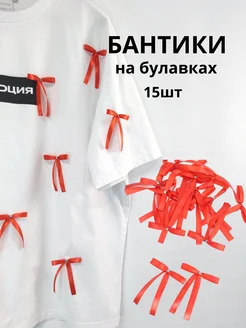Брошки бантики на булавках маленькие. Красный атлас. 15шт