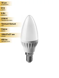 (10 шт.) Светодиодная лампочка свеча C37 E14 6W(450Lm) 2700