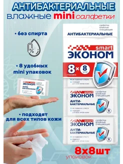Влажные салфетки антибактериальные мини 8*8 без спирта