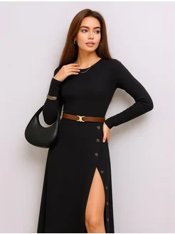 Платье с драпировкой вечернее миди с рукавами фонариками