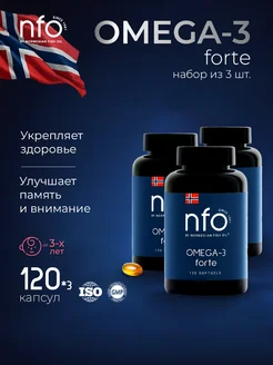 NFO Омега-3 Форте, комплект из 3 банок по 120 капсул