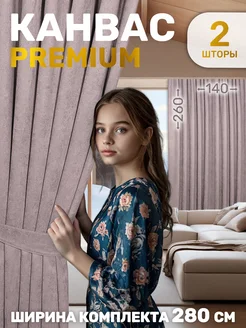 Шторы канвас в спальню комплект плотные 140 на 260, 2 шт