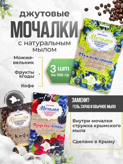 Мочалка джутовая с натуральным мылом для тела и бани 3шт