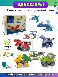 Конструктор с шуруповёртом и машинами динозаврами (2п3)-3л2