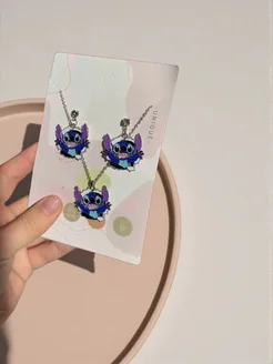 Яркий набор украшений Стич подвеска и серьги гвоздики