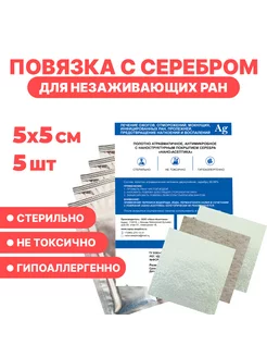 Повязка с серебром для лечения ран 5х5см, комплект 5шт