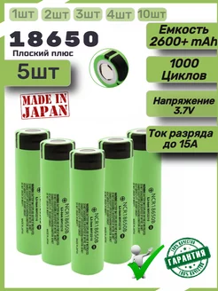 Аккумуляторы 18650 емкостью 2600mAh 5шт. Плоский плюс