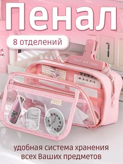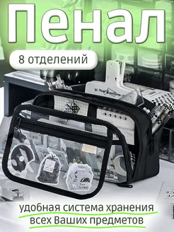 Пенал школьный прозрачный эстетичный косметичка на молнии