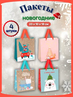 Пакеты новогодние подарочные 4 штуки с рисунком