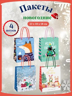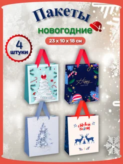 Подарочный пакет новогодний набор 4 штуки с рисунком
