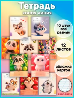 Тетрадь косая линия 12 листов с рисунком 10 штук