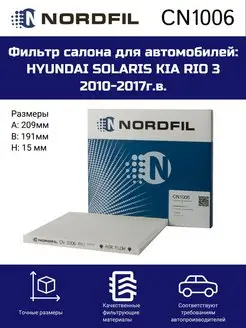 Фильтр салона CN1006 Солярис, Киа Рио 3 2010-2017г.в