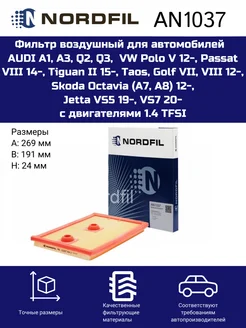 Фильтр воздушный AN1037 Volkswagen Skoda 1.2-1.4 литра турбо