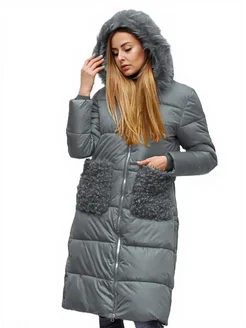 Пуховик с капюшоном стеганое пальто с меховой отделкой