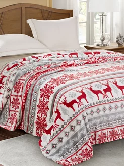Плед 180x200 новогодний пушистый скандинавский с оленями