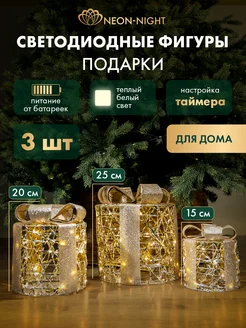 Набор светодиодных фигур Подарки 3 штуки теплый белый