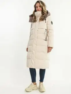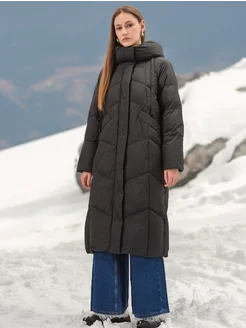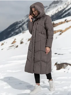 Пуховик с капюшоном длинный теплый