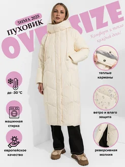 Пуховик женский зимний оверсайз с капюшоном