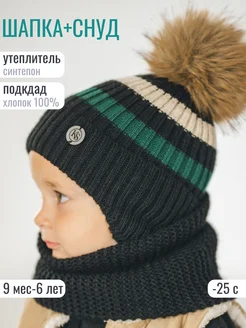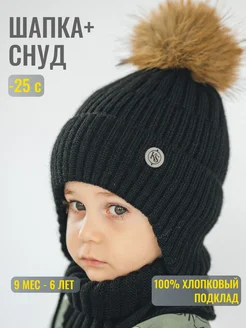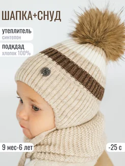 Шапка со снудом зимняя для малыша детская вязаная