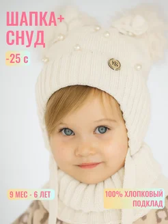 Шапка со снудом зимняя для девочки малыша детская вязаная