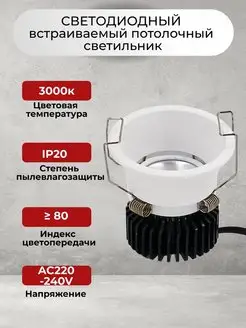 Светодиодный встраиваемый потолочный светильник-IP20 3000к