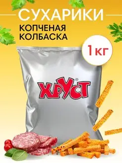 Сухарики 1 кг со вкусом копченых колбасок снеки для пива