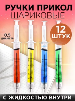 Шариковая ручка прикол "Шприц с жидкостью", 12 шт