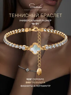 Ювелирный браслет Теннисный с фианитами и перламутром Клевер