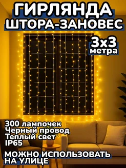 Новогодняя гирлянда штора зановес для улицы и дома 3х3метра