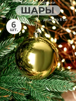 Набор шаров 8 см, пластик, золотой, глянцевый, 6 шт